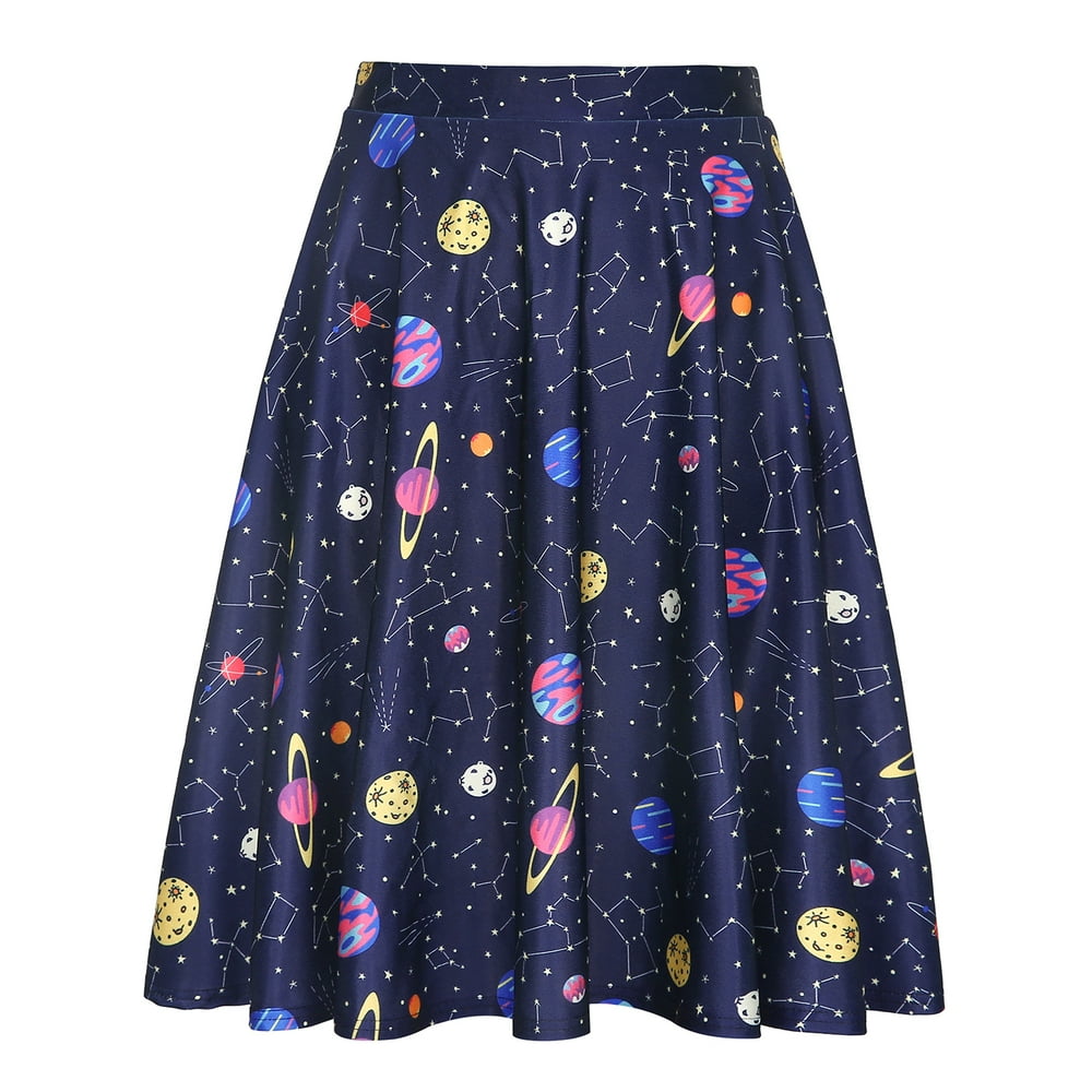 HDE - HDE Outer Space Galaxy Skirts for Women Universe Constellation Skirt (Size: Medium
