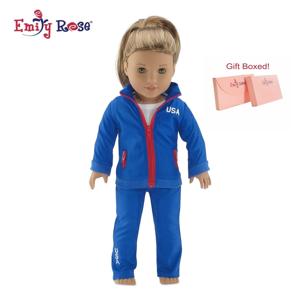 Emily Rose 18 Inch Doll Clothes | Team USA 2 Piece Warm Up Doll Outfit, Including Jacket with
