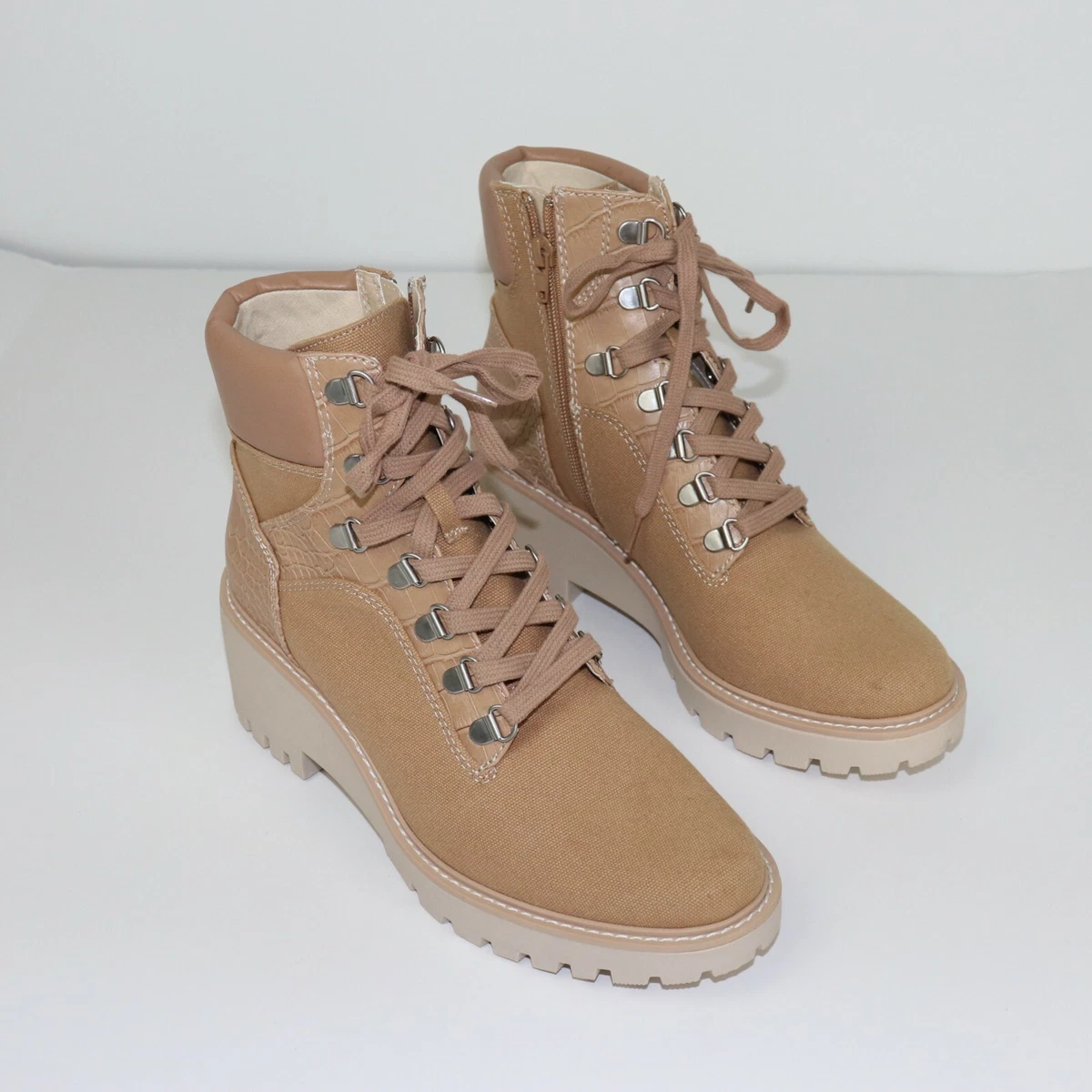 Dolce Vita Hank Canvas Faux Leather Combat Winter Boots Womenu0026#039;s Sz 8.5 Beige | eBay