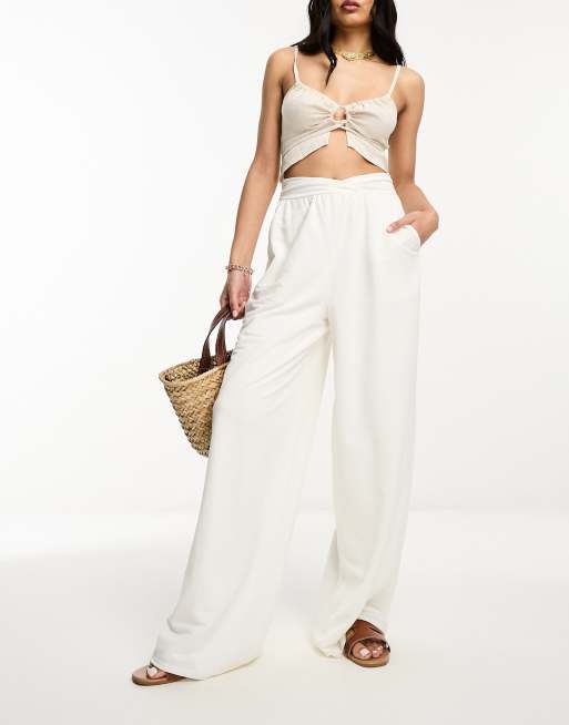 South Beach yoga wide leg trousers in off white - ShopStyle