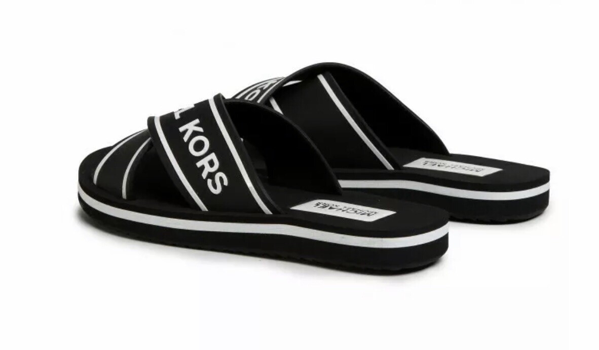 Michael Kors MK Logo Sz.7 M Sparrow Slides Black u0026amp; White Logo Sandals Flip Flop | eBay