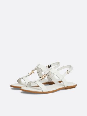 Leather Monogram Flat Sandals | WHITE | Tommy Hilfiger