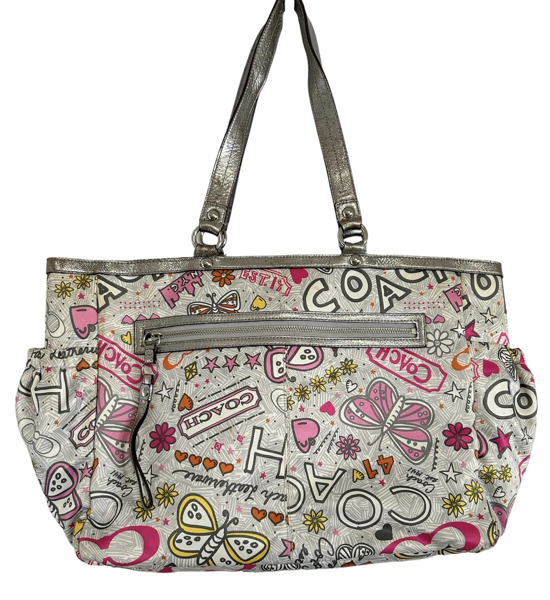 Coach Poppy Graffiti Butterfly Heart Satin Diaper Tote Bag Silver F16219 | eBay