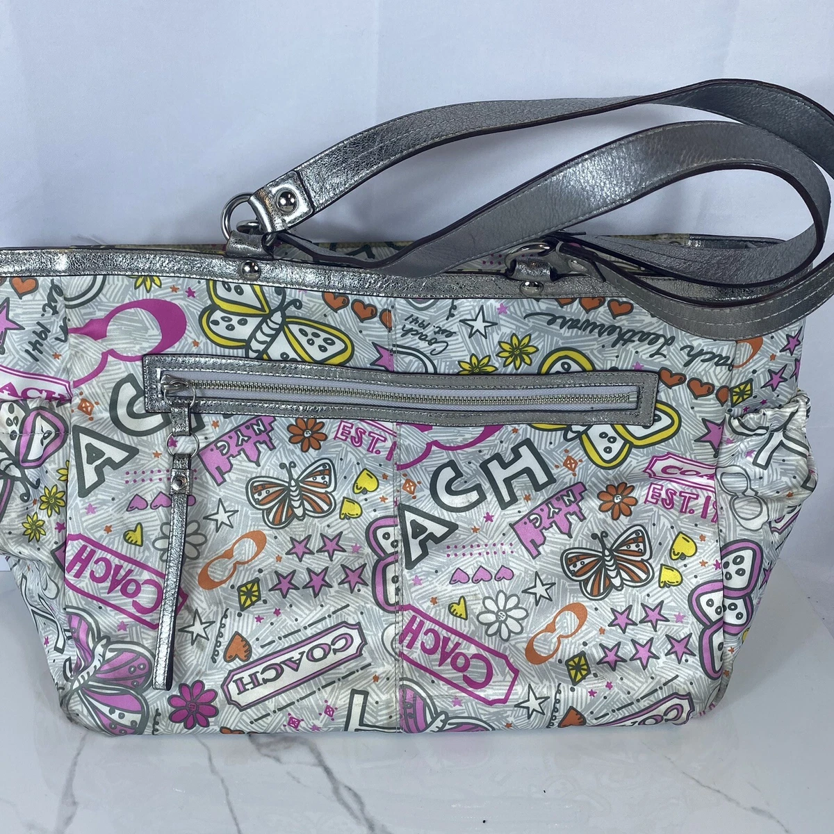 Coach Poppy Bandana Butterfly Graffiti Tote Bag Purse Satchel Silver Pink Multi | eBay