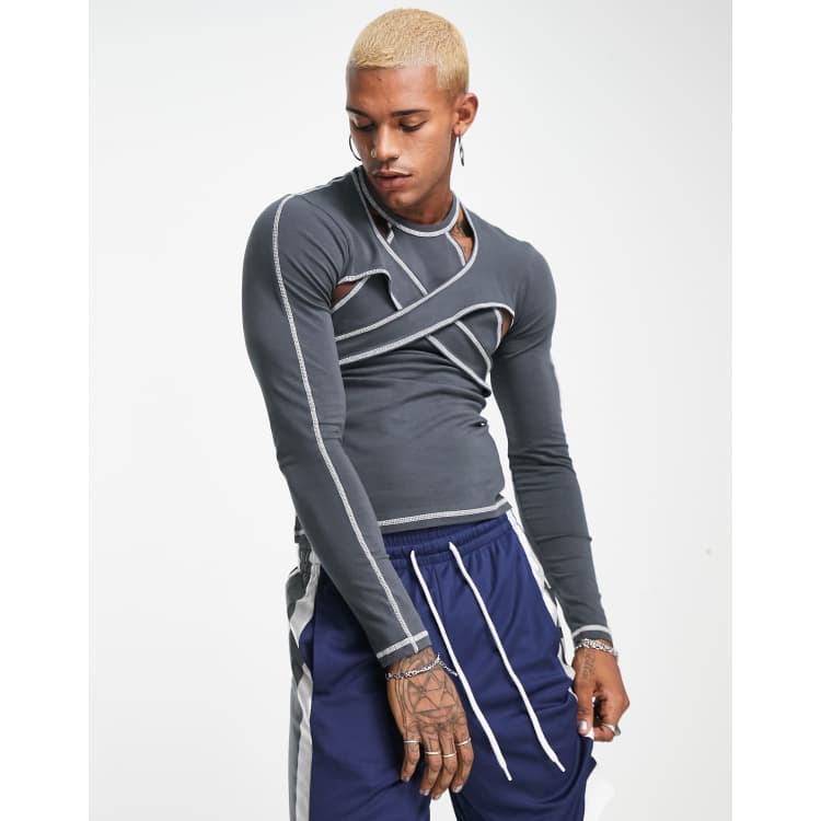 ASOS DESIGN long sleeve muscle cut out t-shirt in washed black | ASOS