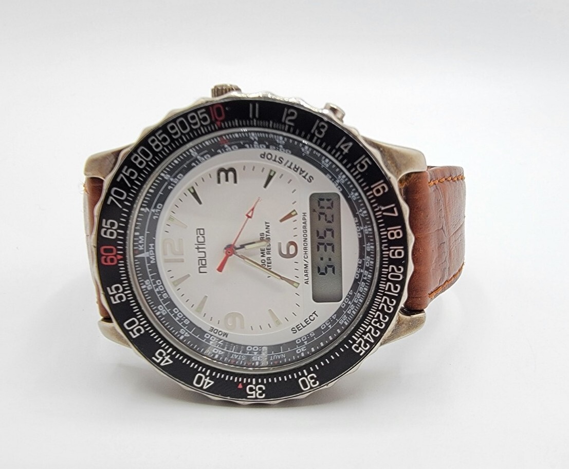 Vintage Nautica Analog Digital Alarm Chronograph White Dial SS Quartz Watch | eBay