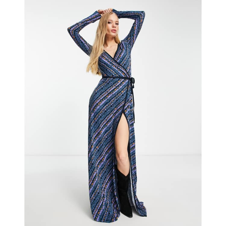 Free People phoebe printed jersey maxi wrap dress in multi | ASOS