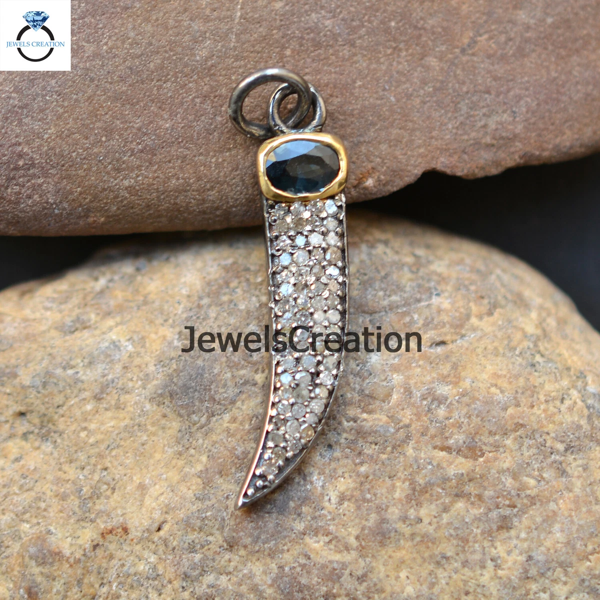 Natural Blue Sapphire Horn Pendant 925 Silver Pave Diamond Horn Pendant Jewelry | eBay