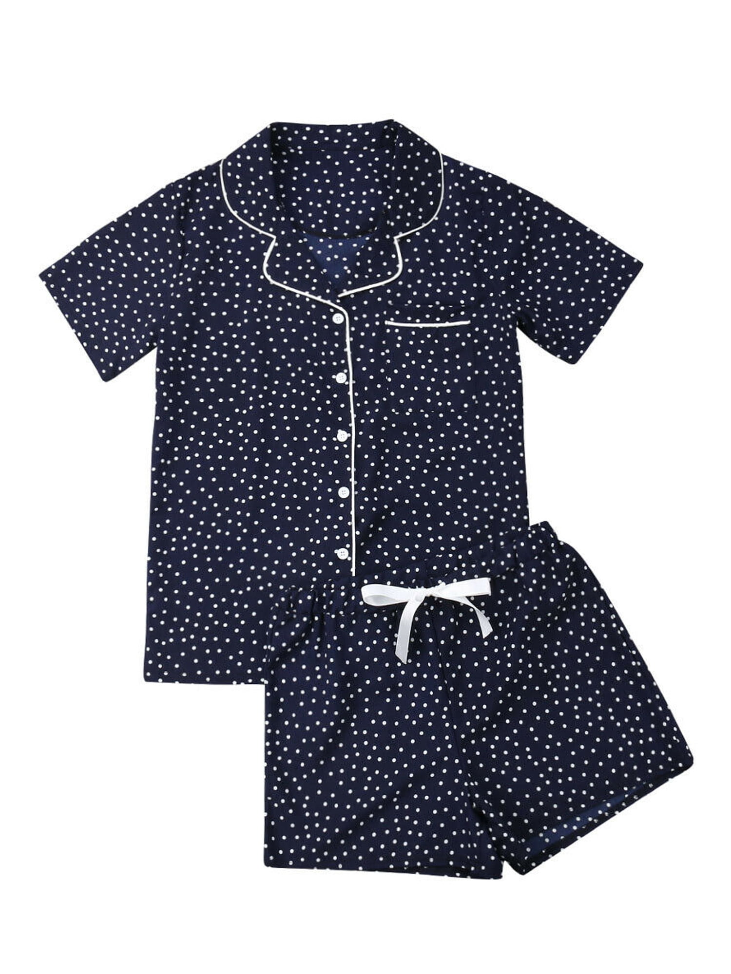 Lookwoild Women 2 Piece Polka Dot Striped Short Sleeve Sleepwear Pajamas Set, Women's, Size: Small