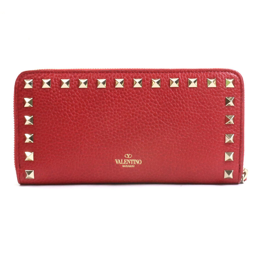 Valentino Garavani Rockstud Pet Customizable Zip Wallet for Woman in Rose Quartz/pure Red | Valentino CH