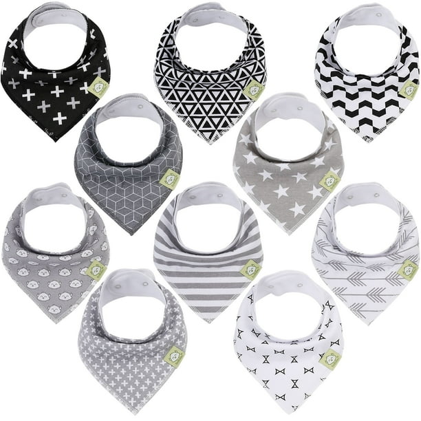 10-Pack Baby Bandana Drool Bibs - Bandana Bibs for Boys, Girls - Super Absorbent Bandana Drool