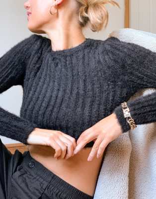 Topshop fluffy ribbed sweater in black