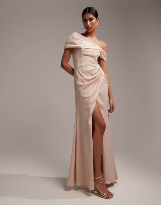 ASOS EDITION satin bardot drape wrap maxi dress in blush | ASOS