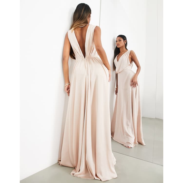 ASOS DESIGN Bridesmaid ruched maxi dress with pleated skirt and button back detail in champagne | ASOS
