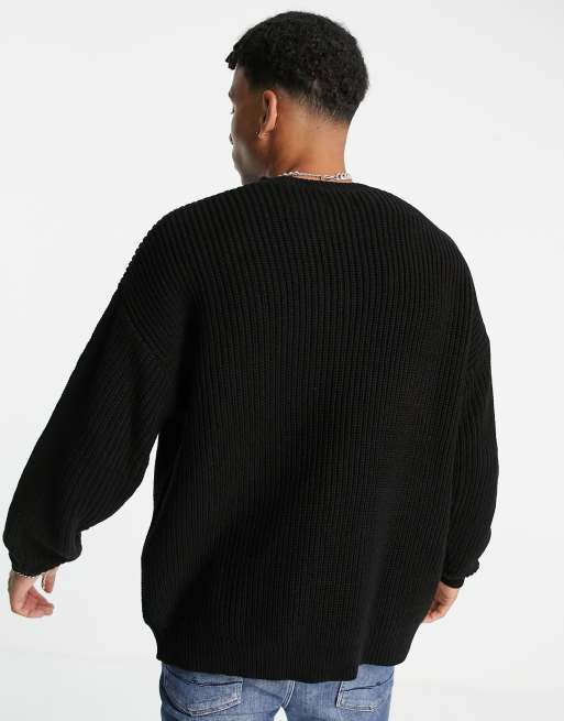 ASOS DESIGN knitted oversized fisherman rib jumper in black | ASOS