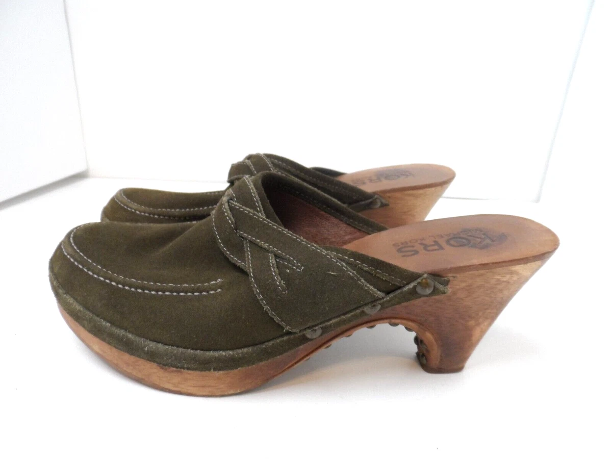 KORS Michael Kors Womenu0026#039;s Brown Suede u0026amp; Wooden Studded Clogs - Size 7.5 | eBay