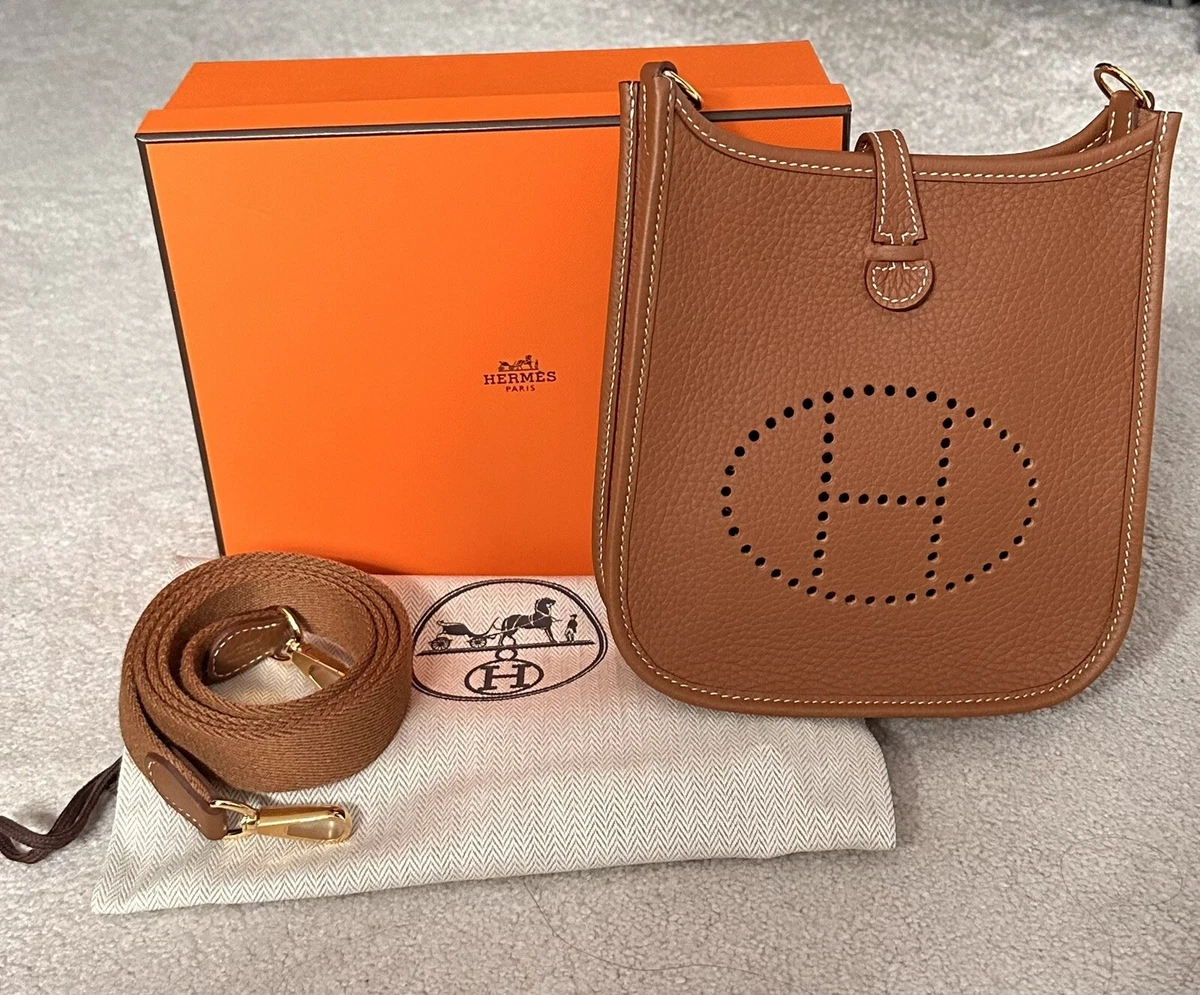 NEW HERMES GOLD BROWN MINI EVELYNE AMAZONE 16 BAG GOLD HANDBAG KELLY CROSSBODY | eBay