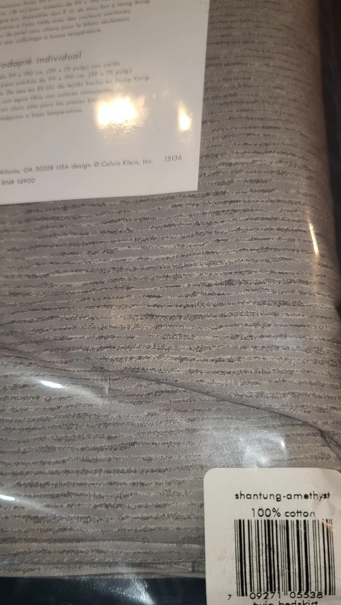 New Calvin Klein Anemone/Shantung Silver Stripe Gray Twin Bed skirt | eBay