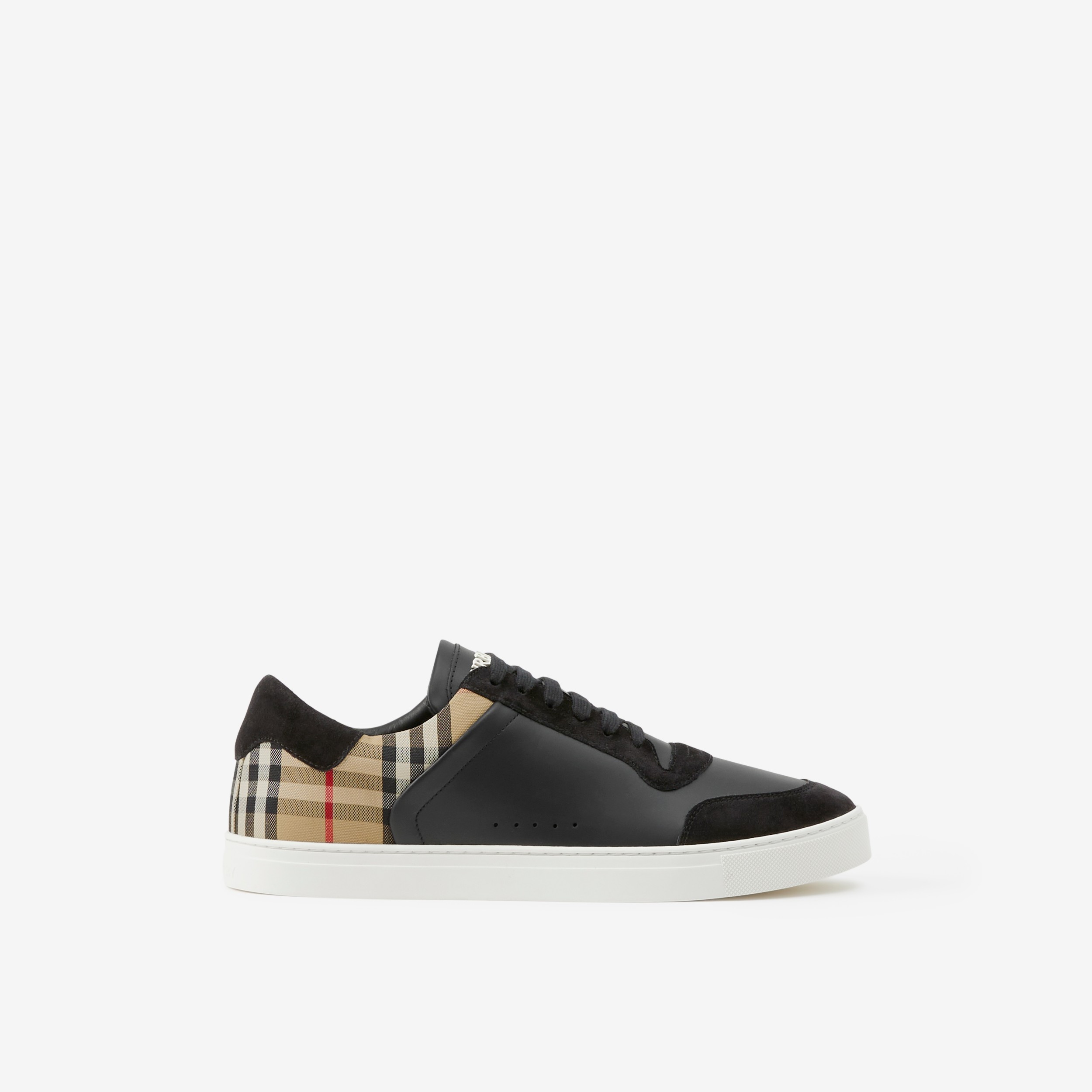 Leather, Suede and Check Sneakers in Natural White/archive Beige - Men | Burberry® Official