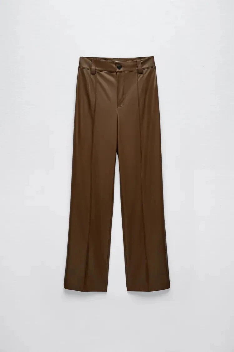 Zara faux leather Brown Françoise Full Length Trousers Size S Small | eBay