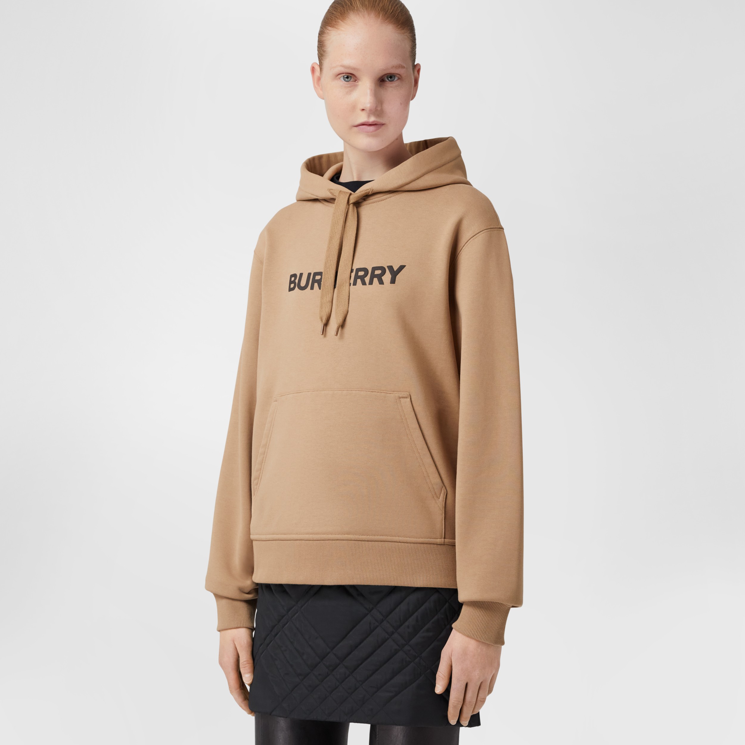 Logo Print Cotton Hoodie in Camel - Women | Burberry® Official
