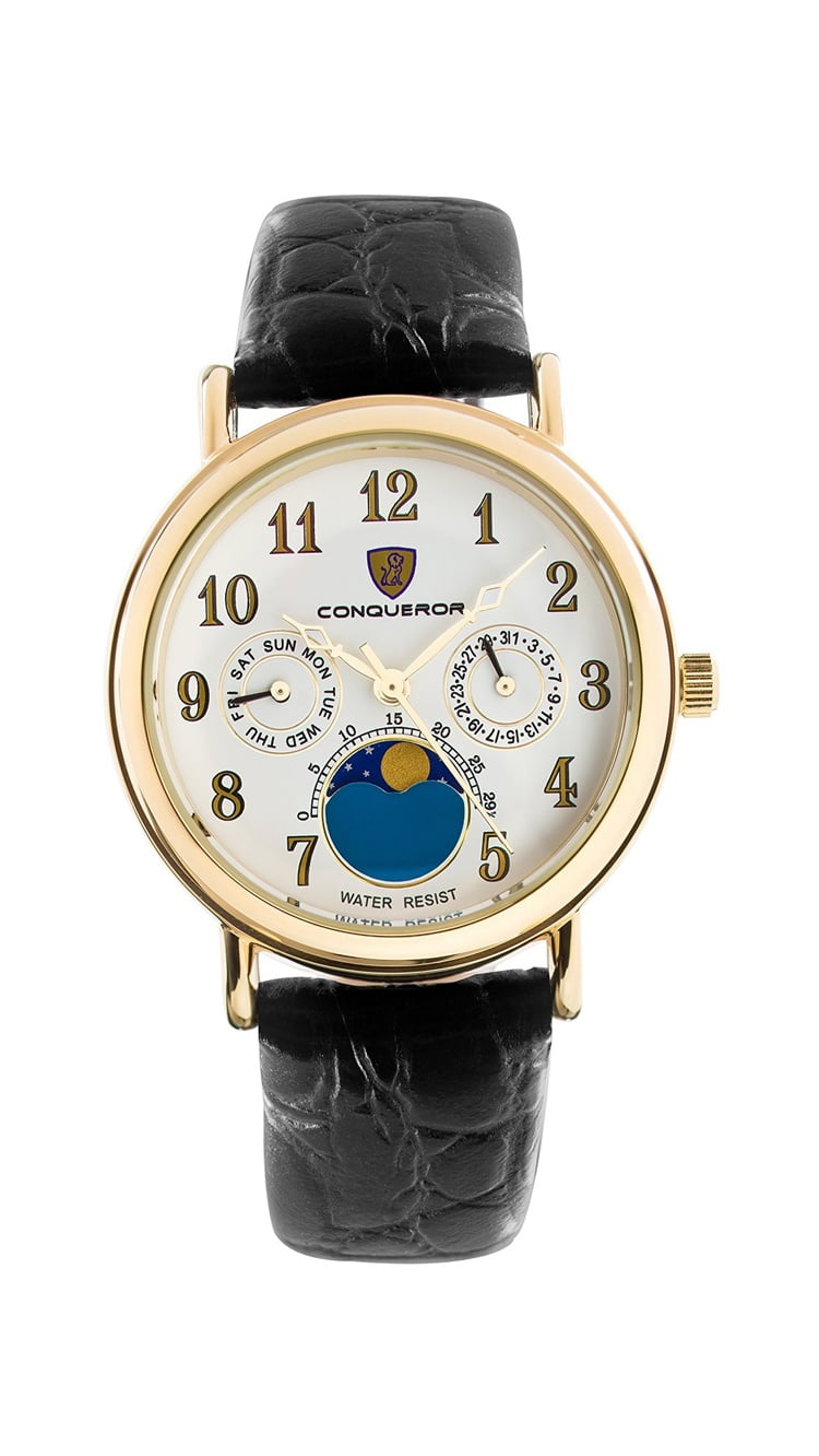 Conqueror - Caritas CNQMF-031914 Moon Chronographic Black Leather Men's Watch - Walmart.com