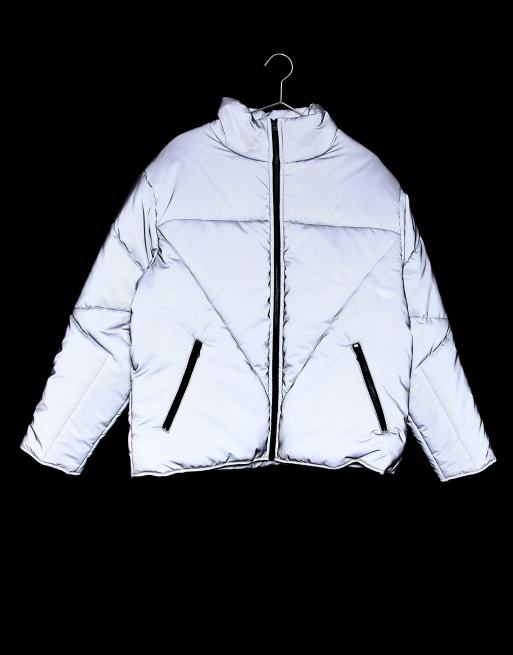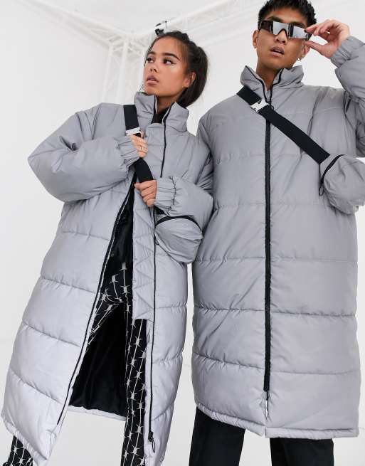 COLLUSION Unisex reflective puffer jacket in grey | ASOS