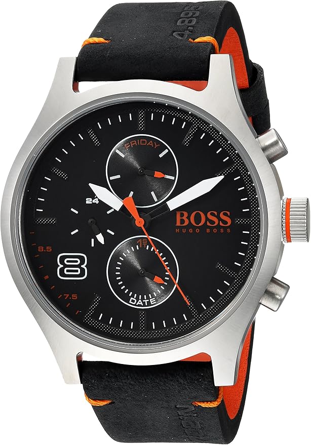 Amazon.com: Hugo BOSS Men's Amsterdam Stainless Steel Quartz Watch with Leather Calfskin Strap