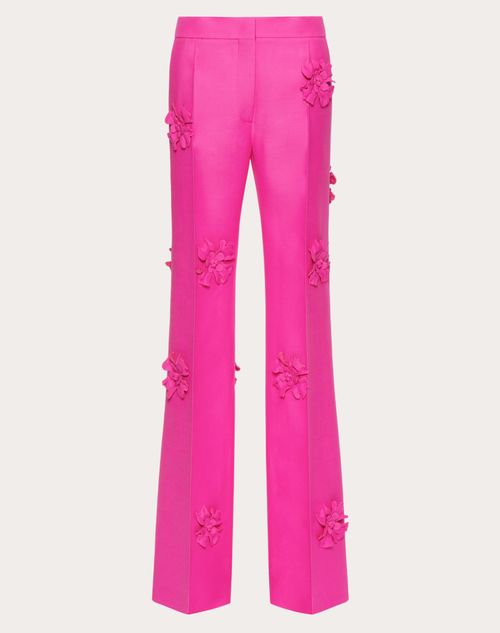 Crepe Couture Trousers With Floral Embroidery for Woman in Pink Pp | Valentino US