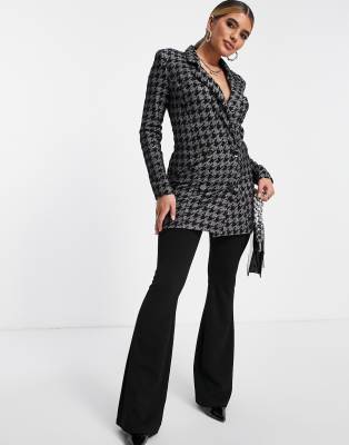 ASOS Design Jersey Longline Suit Blazer in Glitter houndstooth-Multi