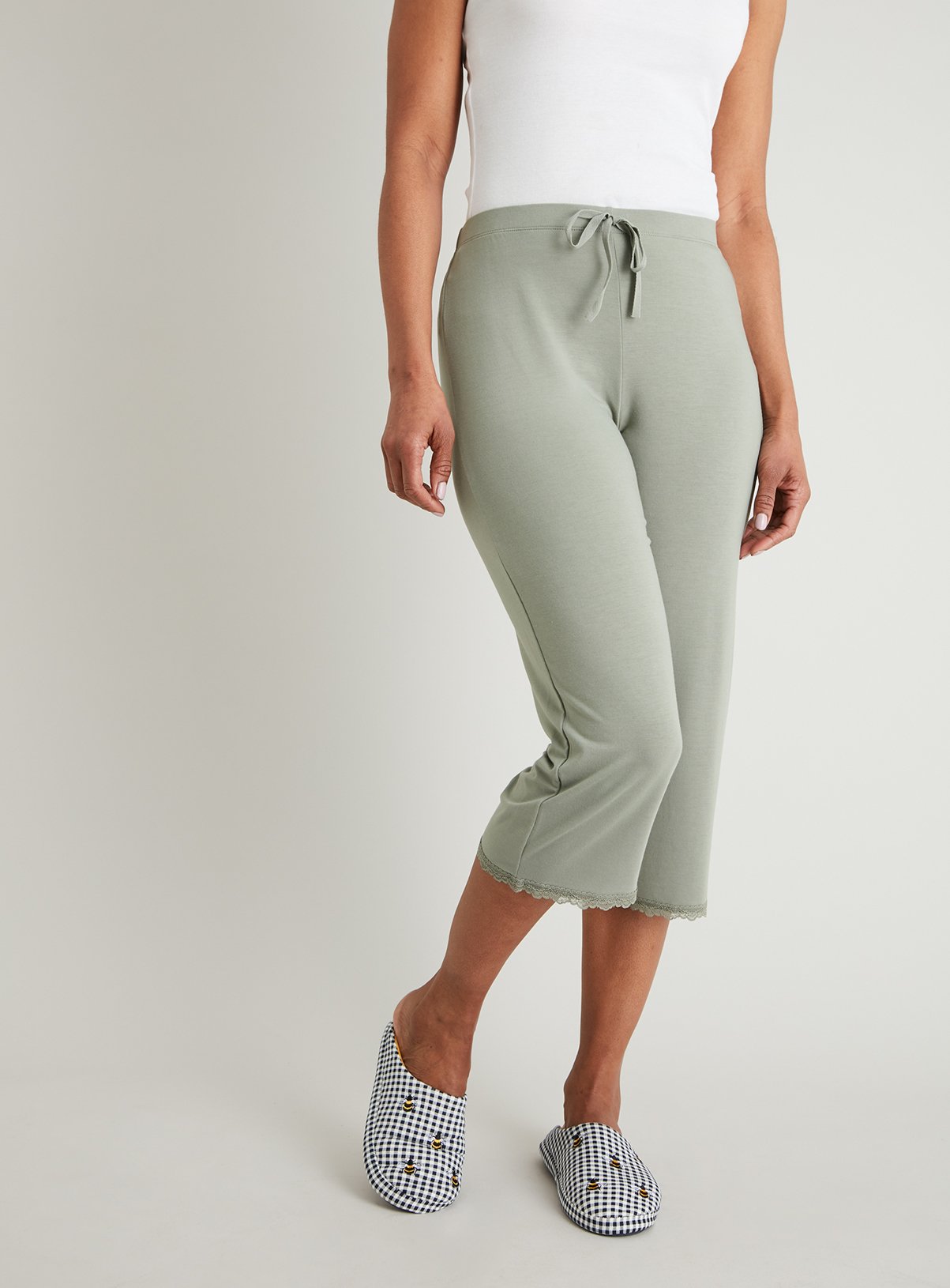 Womens Sage Green Lace Trim Cropped