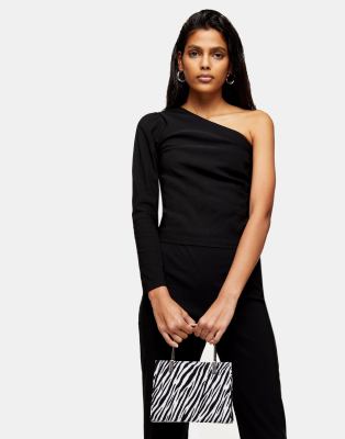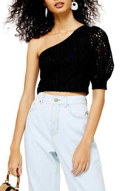 TOPSHOP Lace One Shoulder Puff Sleeve