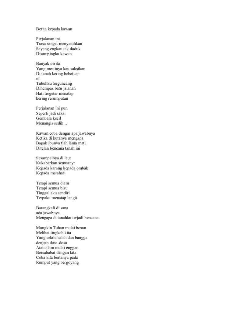 Kepada Kawan - Ebiet G Ade Full Lyric