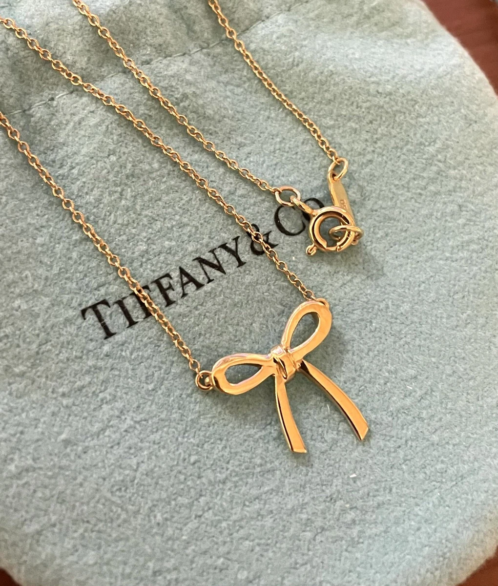 Auth Tiffany u0026 Co. 18k Yellow Gold Bow Ribbon Pendant Necklace 16” | eBay