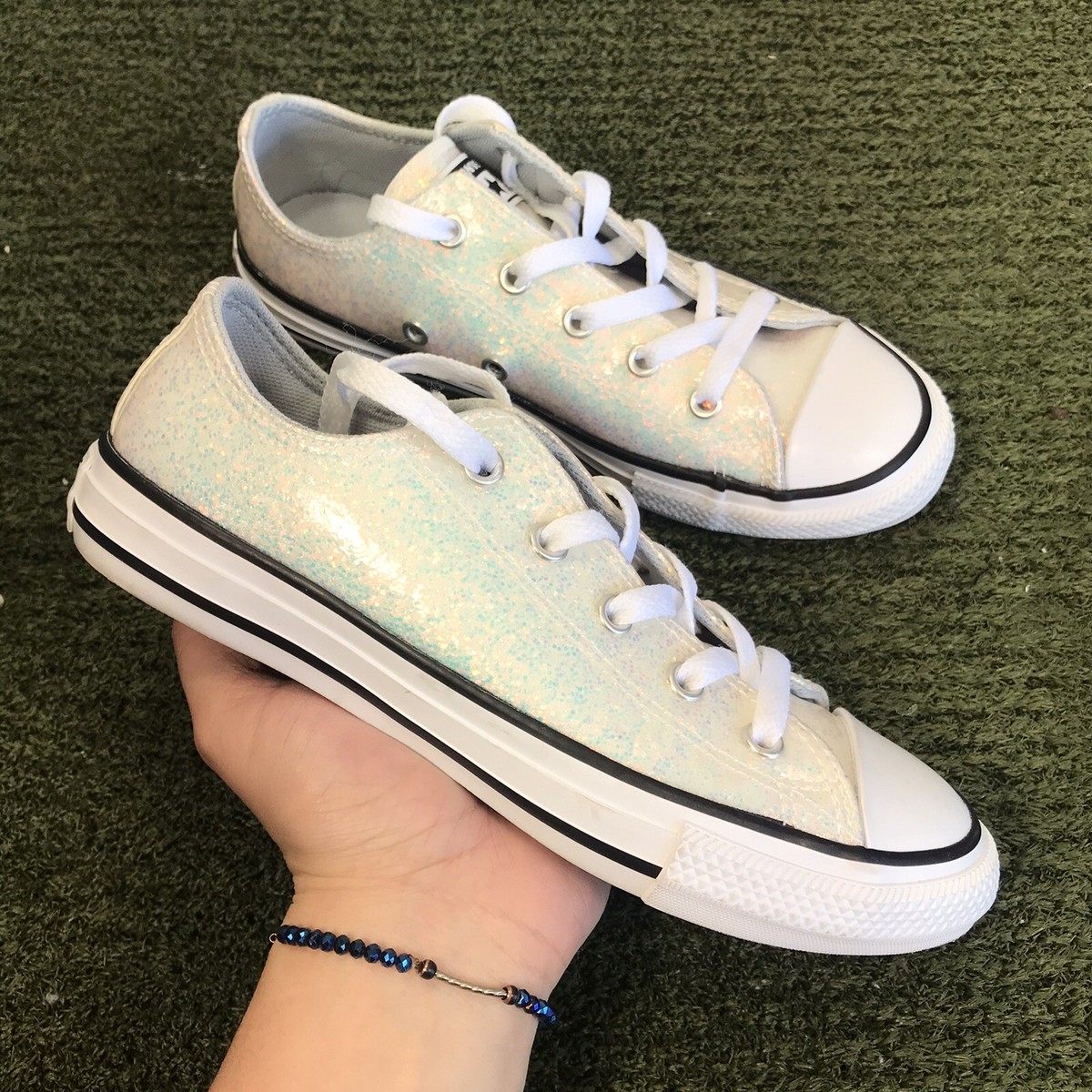 Converse CTAS Ox Wolf Grey Rainbow Glitter Junior Kids Sneakers 665979C size 4 | eBay