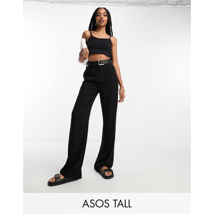 ASOS DESIGN Tall relaxed trousers with linen in black | ASOS